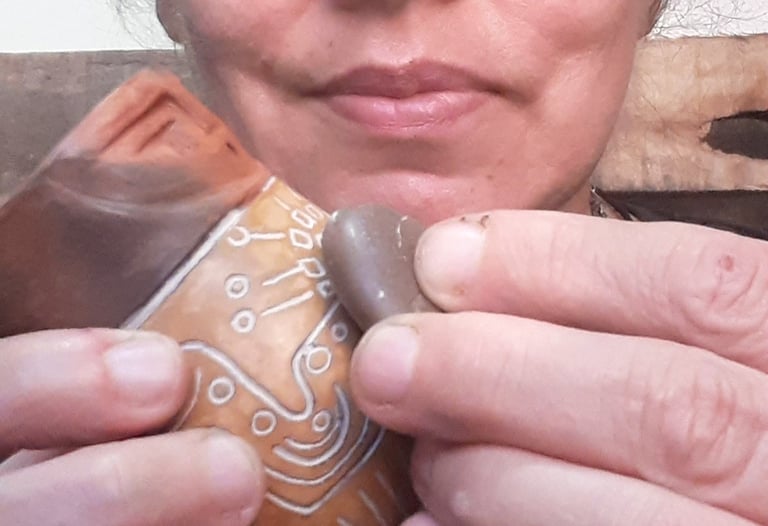 Piezas de cerámica hechas a mano con técnicas ancestrales, horneadas a leña y acabadas con cera de abejas para un brillo natural y suave. Taller de cerámica precolombina en Zona Norte, Buenos Aires. Clases personalizadas de 3 horas, cupos reducidos y técnicas ancestrales. Consultá.