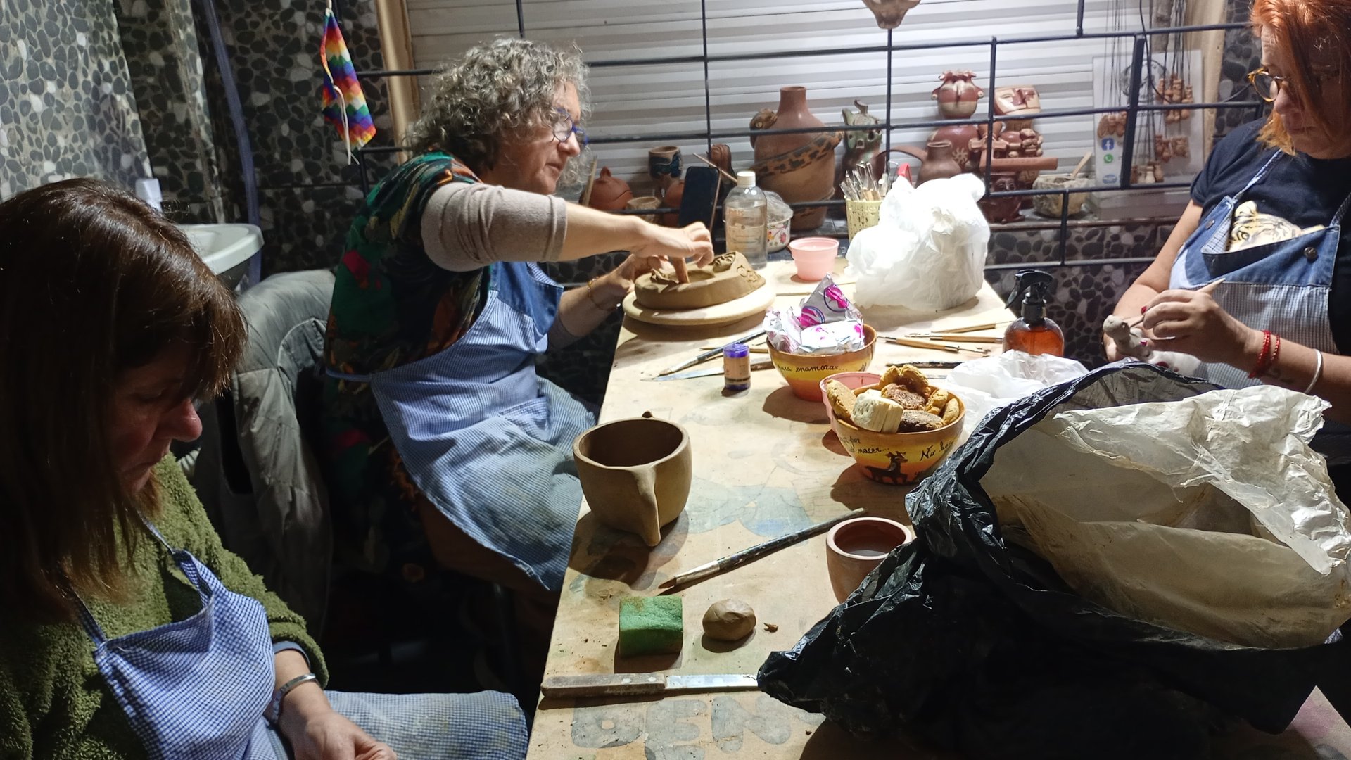 Cada clase tiene una duración de 3 horas, permitiendo trabajar los procesos cerámicos con profundidad y sin apuro. Se abordan técnicas de modelado manual, construcción por chorizos, paleteado, bruñido, pintura, esgrafiado y decoraciones inspiradas en piezas precolombinas o en propuestas personales, acompañando cada etapa del proceso creativo, respetando los tiempos propios de la arcilla y de cada persona.
